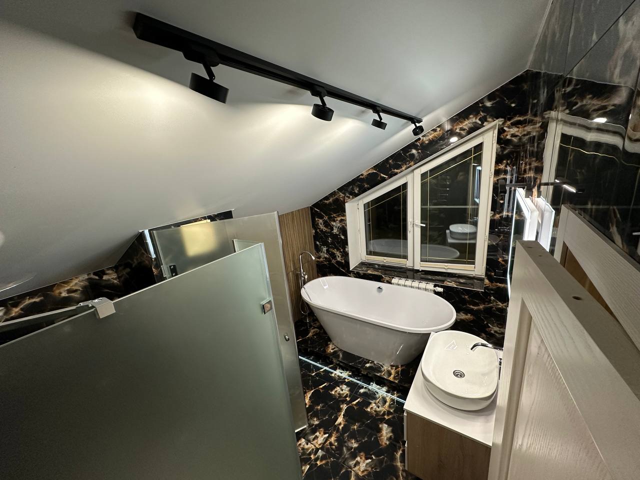 В ванной комнате была выполнена внутренняя отделка по дизайн-проекту от DD Studio.